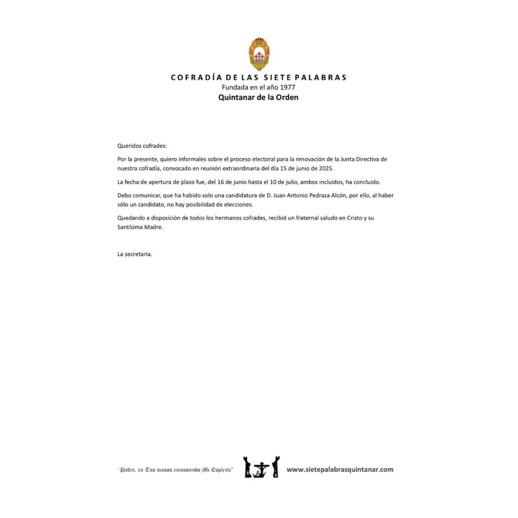 Al conocer la elección del sucesor de San Pedro, en la persona del cardenal Robert Francis Prevost, que ha elegido de nombre para su Pontificado el de León XlV, pedimos al Señor que conceda al nuevo papa, los dones del Espíritu, para que con su ministerio, sea signo de unidad y paz para la humanidad.